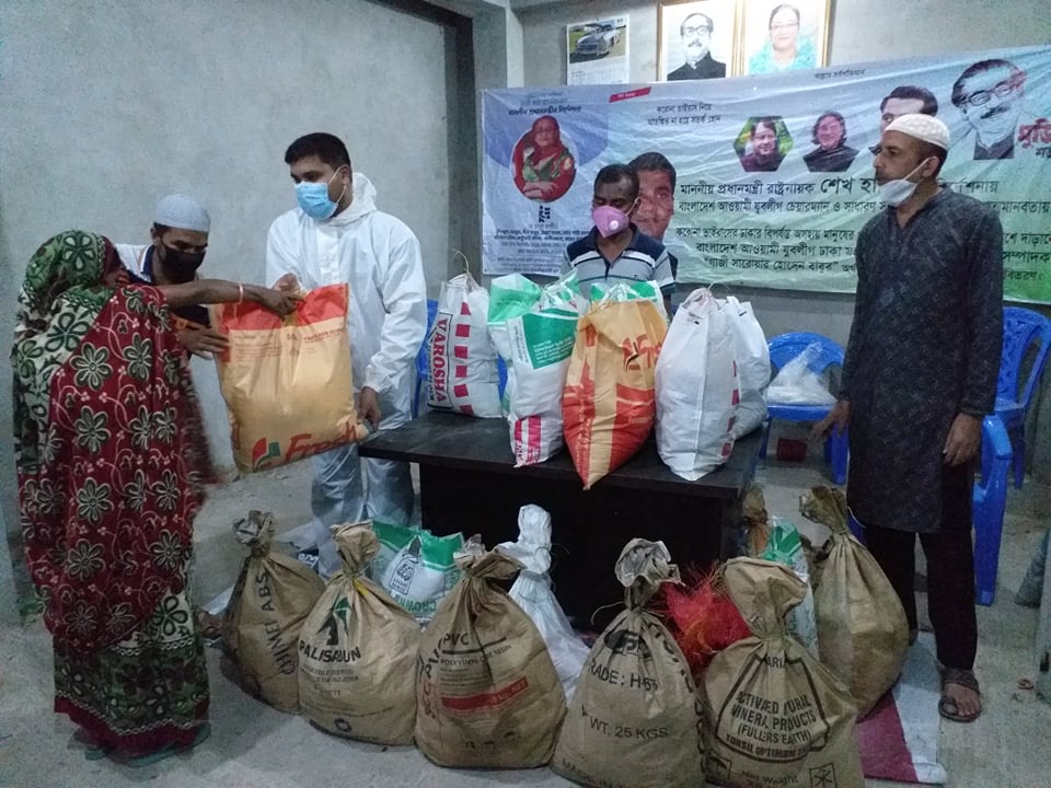 মাননীয় প্রধানমন্ত্রী রাষ্ট্র নায়ক শেখ হাসিনা নিদের্শে ও যুবলীগ চেয়ারম্যান অধ্যাপক শেখ ফজলে শামস পরশ ও সাধারণ সম্পাদক আলহাজ্ব মোঃ মাইনুল হোসেন খান নিখিলের নেতৃত্বে করোনা থাবা হানার পর থেকেই কর্মহীন, অসহায় ক্ষতিগ্রস্ত মানুষের
