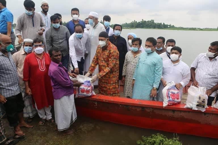 পানি বন্দী অসহায় মানুষের মাঝে প্রধানমন্ত্রীর ঈদ খাদ্য উপহার বিতরণ করেন যুবলীগ।