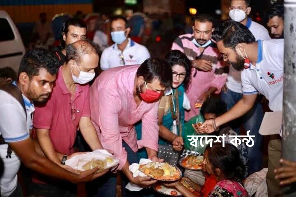 সুদূর কানাডা থেকে বাংলাদেশের অসহায় মানুষের জন্য ধর্ম বর্ণ সর্বশ্রেণীর দুঃখী মানুষের জন্য আমাদের সম্মানিত ও গরিবের বন্ধু জনাব নাসির কাশেম ও জাহেদুল ইসলাম ভাইয়ের পৃষ্ঠপোষকতায় আমরা শুরু করেছি আর্ত-মানবতার সেবায় নিয়োজিত একটি সংগঠন যার নাম মানুষ এই আর্ত-মানবতার সেবায় নিয়োজিত রাতের আঁধারে যারা রাস্তায় থাকে, রাস্তায় ঘুমায়, রাস্তায় যাদের জীবন তাদের জন্য মাসের একটি দিন,একটু উন্নত খাবার প্রধান করার উদ্দেশ্যে প্রতিষ্ঠিত আমাদের “মানুষ” আর এই প্রতিষ্ঠান এর প্রথম আত্মপ্রকাশ কার্যক্রমের শুভ সূচনায় উপস্থিত ছিলেন বাংলাদেশ চলচ্চিত্রের জনপ্রিয়, জননন্দিত আলোচিত চিত্রনায়ক জনাব ওমর সানি সহ উপস্থিত ছিলেন বাংলা চলচ্চিত্রের এক উজ্জ্বল নক্ষত্র, আমাদের চলচ্চিত্র নির্মাতা জনাব এফআই মানিক। উপস্থিত ছিলেন জাজ মাল্টিমিডিয়ার সুযোগ্য সি ই ও, আপন এন্টারটেনমেন্টের চেয়ারম্যান কানাডা প্রবাসী জনাব আলী মোল্লা খোকন সহ উপস্থিত ছিলেন রাজ্য মাল্টিমিডিয়ার চেয়ারম্যান অভিনেতা, অভিনেত্রী, চিত্রগ্রাহক, সাংবাদিক সংগীতশিল্পী সহ অনেকেই। যাদের অক্লান্ত পরিশ্রমের মাধ্যমে, রাত জেগে মগবাজার, হাতিরঝিল, এফডিসির সামনে, সোনারগাঁ, কারওয়ান বাজারের সামনে, বাংলা মোটরস, বাংলাদেশ জাদুঘর, টিএসসির মোড়, মৌচাক-মালিবাগ এর পথে প্রান্তরে যারা ঘুমিয়ে ছিলেন তাদেরকে ঘুম থেকে তুলে আমরা খাবার প্রদান করেছি। যদিও আমাদের আয়োজন টা ছিল একদম অল্প পরিসরে। পরবর্তীতে আমরা আরো সুন্দর ও সফলভাবে প্রতিটি প্রোগ্রাম করব বলে আশা ব্যক্ত করেন