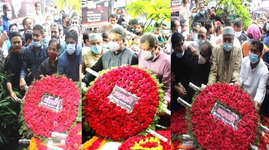 ঢাকা মহানগর দক্ষিন যুবলীগের সাংগঠনিক সম্পাদক গাজী সারোয়ার হোসেন বাবু,মোহাম্মদ মাকসুদুর রহমান, সম্পাদক মন্ডলির সদস্য, আরমান হক বাবু, মোঃ আবুল কাশেম খা,গোঁফরান গাজী,খন্দকার আরিফুজ্জামান, আলতাফ হোসেন,শহিদুল ইসলাম হৃদয় সহ মহানগর যুবলীগের নেতৃবৃন্দ পুষ্পস্তবক অর্পণ ও শ্রদ্ধা নিবেদন করেন।