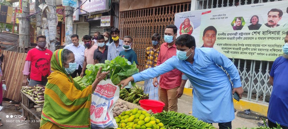 ঢাকা মহানগর দক্ষিণ যুবলীগের সাংগঠনিক সম্পাদক গাজী সারোয়ার হোসেন বাবুর জন্মদিন উপলক্ষে পুরান ঢাকার সুত্রাপুর থানাধীন লক্ষীবাজারে সকাল ৯ টা থেকে সাড়ে ১১ টা পর্যন্ত ১০ রকমের টাটকা সবজি বিতরণ স্থানীয় যুবলীগ নেতারা। পথচারী, রিকশাওয়ালা, হতদরিদ্র অসহায় মানুষের মাঝে কাঁচা তরিতরকারি, শাকসবজিসহ, করোনা প্রতিরোধক সামগ্রী মাস্ক বিতরণ করা হয়। দুই শতাবধি মানুষের মাঝে বিতরণ করা হয়েছে।