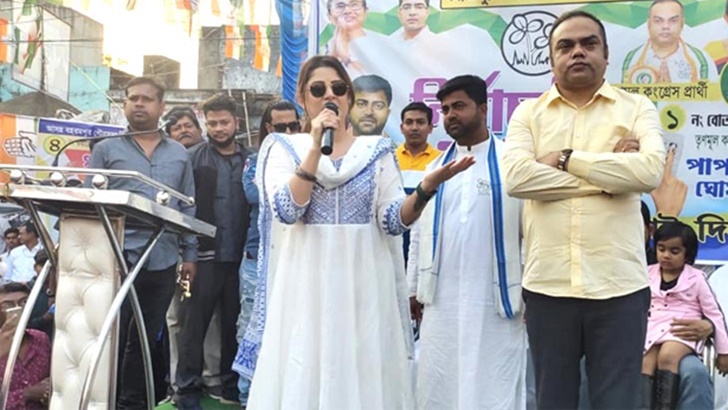 এবার তৃণমূলের প্রচারমঞ্চে দেখা গেল শ্রাবন্তীকে। বহরমপুর পৌরসভার ভোটে তৃণমূলের হয়ে প্রচারে নেমেছেন নায়িকা।