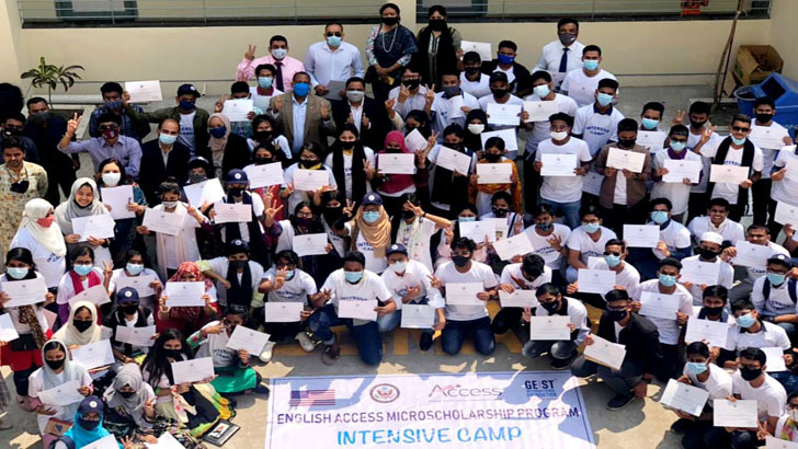 মার্কিন পররাস্ট্র মন্ত্রণালয়ের অর্থায়নে ও ঢাকার আমেরিকান দূতাবাসের সার্বিক তত্ত্বাবধানে জিস্ট ইন্টারন্যাশনাল ফাউন্ডেশন পরিচালিত ইংলিশ এক্সেস মাইক্রোস্কলারশিপ প্রোগ্রামের শিক্ষার্থীদের ১৬ ঘণ্টাব্যাপী ইনটেনসিভ ক্যাম্প অনুষ্ঠিত হয়েছে।