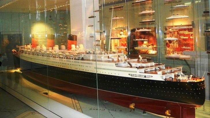 কৃত্রিম এক জলাধারে প্রপেলারের ঘূর্ণনে এবং জাহাজের ভেঁপুর শব্দে জাদুঘর প্রাঙ্গণ পরিণত হয়েছে একখণ্ড সমুদ্রে। ১৯১২ সালে আটলান্টিকে ডুবে যাওয়া বিলাসবহুল প্রমোদতরী টাইটানিক জাহাজটির অনুকরণে এ মডেলটি স্থাপন করা হয়। এ জাহাজের কেবিন ও ডেক এমনভাবে সজ্জিত করা হয়েছে, যেন এটি বাস্তবে এক যাত্রীবাহী জাহাজ।