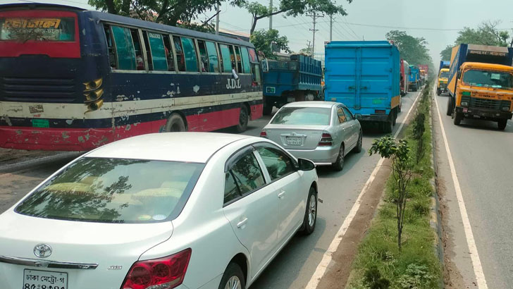 এলাকাবাসীর অভিযোগ, মহাসড়কের মদনপুর, সিদ্ধিরগঞ্জের শিমরাইল ও সাইন বোর্ড এলাকায় যানজট এখন নিত্যদিনের ঘটনা।