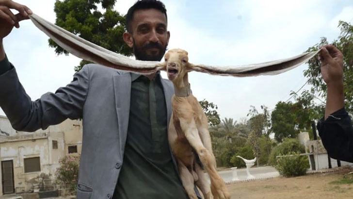 পাকিস্তানের করাচিতে একটি ছাগলের বাচ্চা ১৯ ইঞ্চি লম্বা কান নিয়ে জন্মেছে।