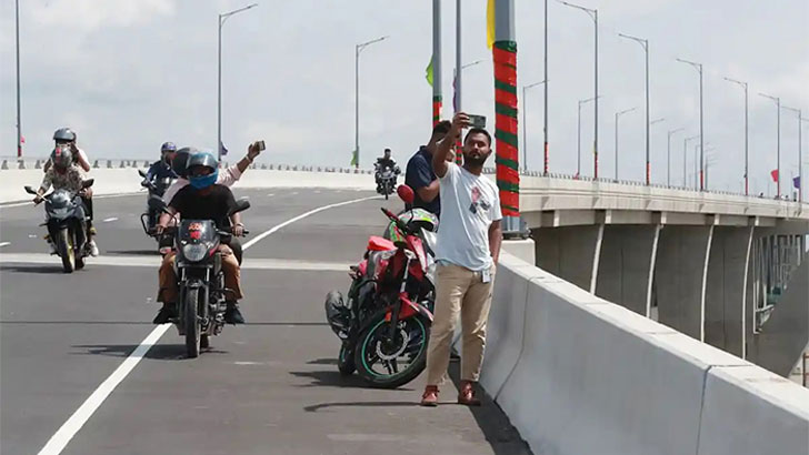 গত শনিবার (২৫ জুন) উদ্বোধনের পরদিন সকাল ৬টায় খুলে দেওয়া হয় দেশের সবচেয়ে বড় অবকাঠামো স্বপ্নের পদ্মা সেতু। ৬.১৫ কিলোমিটার দৈর্ঘ্যের এই সেতুতে উঠতে রীতিমতো পাল্লা দেওয়া শুরু হয় বাইকারদের।১০০ টাকা টোল দিয়ে সেতুতে উঠে বাইকারদের অনেকেই নিয়ম না মেনে হুল্লোড়ে মাতেন। বেপোরোয়া গতিতে বাইক চালাতে শুরু করেন অনেক।