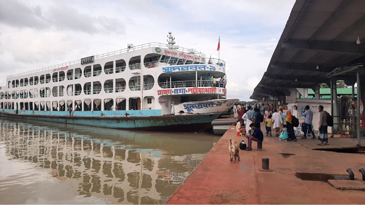 বুধবার বিকালে সরেজমিনে দেখা গেছে, লঞ্চ টার্মিনালে সুন্দরবন-৯ ও কুয়াকাটা-১ যাত্রীর অপেক্ষায় নোঙর করা আছে। তিল ধারণের ঠাঁই না পাওয়া লঞ্চ টার্মিনালে চলছে সুনসান নিরবতা। লঞ্চ কেন্দ্রীক টার্মিনালের ক্ষুদ্র ব্যবসায়ীদের মাঝেও নেই আগের মত মহাব্যস্ততা। দুই-এক যাত্রী নিয়ে চলছে লঞ্চ স্টাফগুলোর টানাটানি। দ্রুত গতিতে মাত্র ৩শ টাকা ভাড়ায় ঢাকা পৌঁছে দেওয়ার প্রতিশ্রুতি দিয়ে হাঁকডাক করছেন তারা।