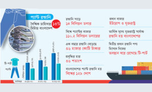 ২০২২ সালে বিশ্বে ট্রাউজার বা প্যান্টের বাজার ১১০.২ বিলিয়ন ডলারের। আর এই চাহিদার ১৩.১৬ শতাংশ মিটিয়েছে বাংলাদেশ। ডলারের হিসাবে প্যান্টের বাজারের সাড়ে ১৪ বিলিয়ন ডলারের হিস্যা বাংলাদেশের। বাংলাদেশি মুদ্রায় যা প্রায় এক লাখ ৩৮ হাজার কোটি টাকা (ডলার ৯৫ টাকা দরে)।