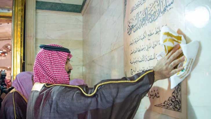 আনুষ্ঠানিকভাবে পরিচ্ছন্নতা কাজে অংশ নেওয়ার আগে যুবরাজ মোহাম্মদ বিন সালমান কাবা শরিফ তাওয়াফ করেন এবং সেখানে নামাজ আদায় ও প্রার্থনা করেন।