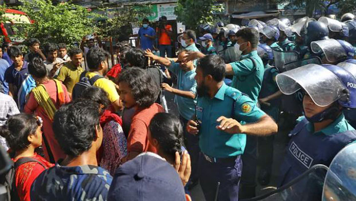 হরতাল সমর্থনে শাহবাগে বিক্ষোভ মিছিলে পুলিশের বাধা, আহত ১
