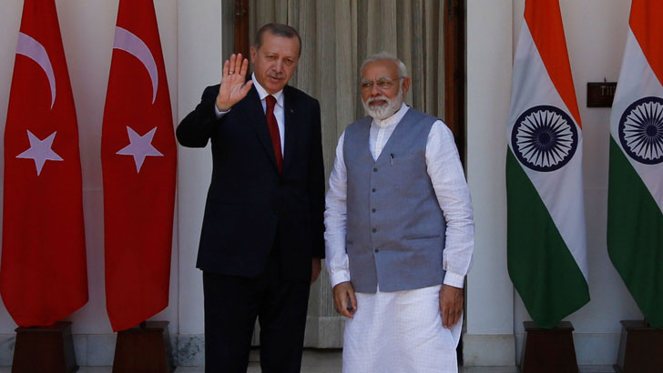রয়টার্স জানায়, এরদোগান পাকিস্তান সফরে গিয়ে কাশ্মীর পরিস্থিতিকে খুবই খারাপ বলে মন্তব্য করায় ২০২০ সালে তুরস্কের রাষ্ট্রদূতকে তলব করে এর প্রতিবাদ জানায় ভারত। ২০১৯ সালে মোদি সরকার কাশ্মীরের স্বায়ত্তশাসিত অঞ্চলের মর্যাদা তুলে নিয়ে এটিকে কেন্দ্রীয় সরকারের অধীন হিসেবে ঘোষণা করে। এ সময় সৃষ্ট পরিস্থিতির দিকে ইঙ্গিত করে এ মন্তব্য করেন তুরস্কের নেতা।
