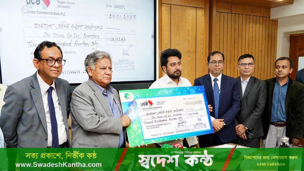 বুধবার সচিবালয়ের নৌপরিবহণ মন্ত্রণালয়ের সভাকক্ষে উপদেষ্টা নাহিদ শ্রম ও কর্মসংস্থান মন্ত্রণালয়ের উপদেষ্টা ব্রিগেডিয়ার জেনারেল (অব.) ড. এম সাখাওয়াত হোসেনের কাছে আর্থিক সহায়তার চেক তুলে দেন। বাংলাদেশ সাবমেরিন ক্যাবলস পিএলসির ২০২৩-২০২৪ অর্থবছরের মুনাফা থেকে এই অর্থ দেওয়া হয়।