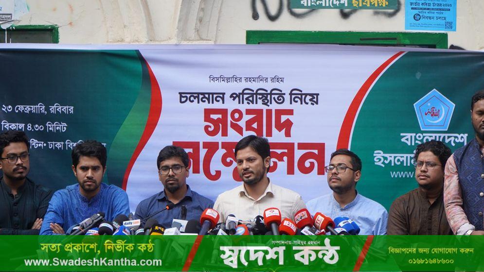 শিবির সভাপতি বলেন, ‘ছাত্ররাজনীতি নিয়ে যে জন-আকাঙ্ক্ষা তৈরি হয়েছিল তা কিছু ছাত্রসংগঠনের আধিপত্যনীতি, সন্ত্রাসী কর্মকাণ্ড, চাঁদাবাজি, দখলদারি, ট্যাগিং ও দোষ চাপিয়ে দেওয়ার হীন সংস্কৃতি চালু রাখার ফলশ্রুতিতে শিক্ষার্থীদের মধ্যে রাজনীতি বিমুখতা তৈরি এবং শিক্ষার পরিবেশ বিনষ্ট হচ্ছে। নিষিদ্ধ ছাত্রলীগ বাংলাদেশ থেকে বিতাড়িত হলেও দুর্ভাগ্যজনকভাবে বন্ধুপ্রতিম ছাত্রসংগঠন ছাত্রদলকে তাদের পথ অনুসরণ করতে দেখা যাচ্ছে।’