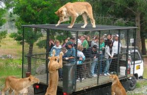 এই এক জিনিস করা হয়ে থাকে ওরানা ওয়াইল্ডলাইফ পার্ক নিউজিল্যান্ড এবং মাঙ্কি জঙ্গল মায়ামিতে। ওরানা ওয়াইল্ডলাইফ পার্ক, নিউজিল্যান্ডে ২০ জন দর্শনার্থীদেয় একদফা ভ্রমনের জন্য ১৫ পাউন্ড খরচা নেওয়া হয়, তাদের একটা খাঁচায় ঢোকানো হয়, একজন প্রহরী থাকে এবং তারা দেখে সিংহরা কিভাবে পালিত হচ্ছে।